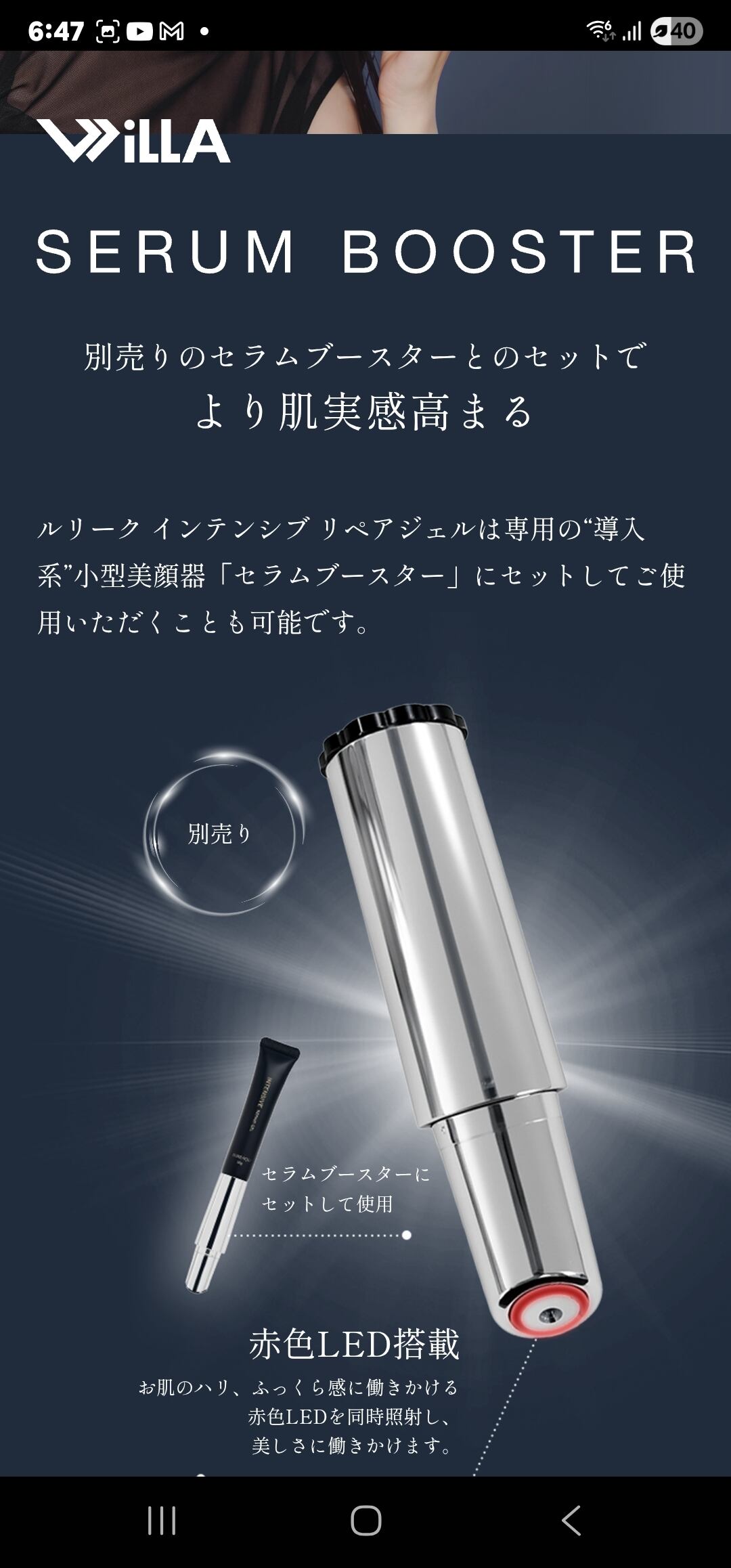 ルリーク インテンシブ リペアジェルは専用の“導入系”小型美顔器「セラムブースター」にセットしてご使用いただくことも可能です。